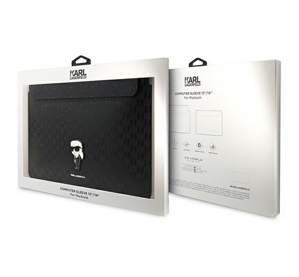 A Karl Lagerfeld Sleeve Saffiano Monogram Ikonik 14" laptop tok elegáns és tartós védelmet nyújt a laptopodnak. Az fekete színű Saffiano anyag prémium minőségű, ellenáll a karcolásoknak és ütődéseknek. Az egyedi monogram dizájn különleges megjelenést biztosít. A belső bélés puha anyagból készült, hogy megóvja a laptopot a sérülésektől. Tökéletes választás a stílus és a funkcionalitás ötvözésére.