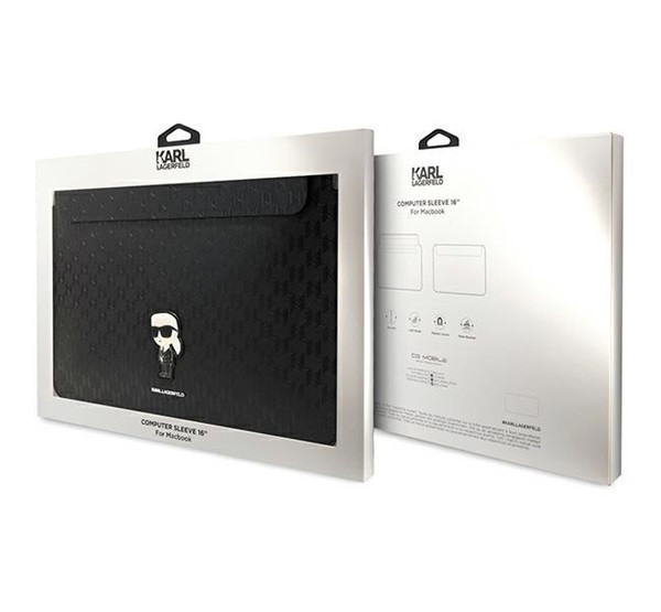 A Karl Lagerfeld Sleeve Saffiano Monogram Ikonik 16" laptop tok elegáns és tartós védelmet nyújt a laptopodnak. Az fekete színű Saffiano anyag prémium minőségű, ellenáll a karcolásoknak és ütődéseknek. Az egyedi monogram dizájn különleges megjelenést biztosít. A belső bélés puha anyagból készült, hogy megóvja a laptopot a sérülésektől. Tökéletes választás a stílus és a funkcionalitás ötvözésére.