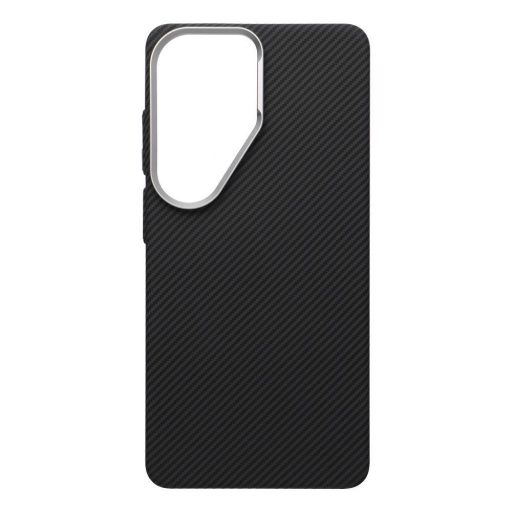 Kevlar Samsung Galaxy S26 Ultra MagSafe tok kameravédő peremmel, fekete-ezüst