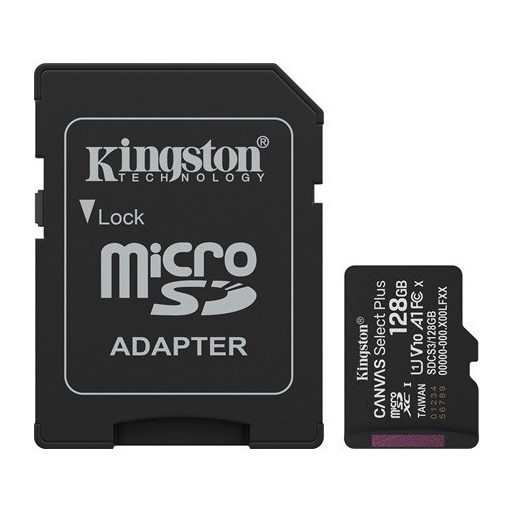 Kingston Canvas Select Plus micro SD kártya, 128GB, SDSC3, fekete