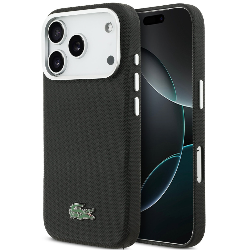 Lacoste Iconic Petit Pique Metal Logo Apple iPhone 17 Pro MagSafe tok kameravédő peremmel, fekete