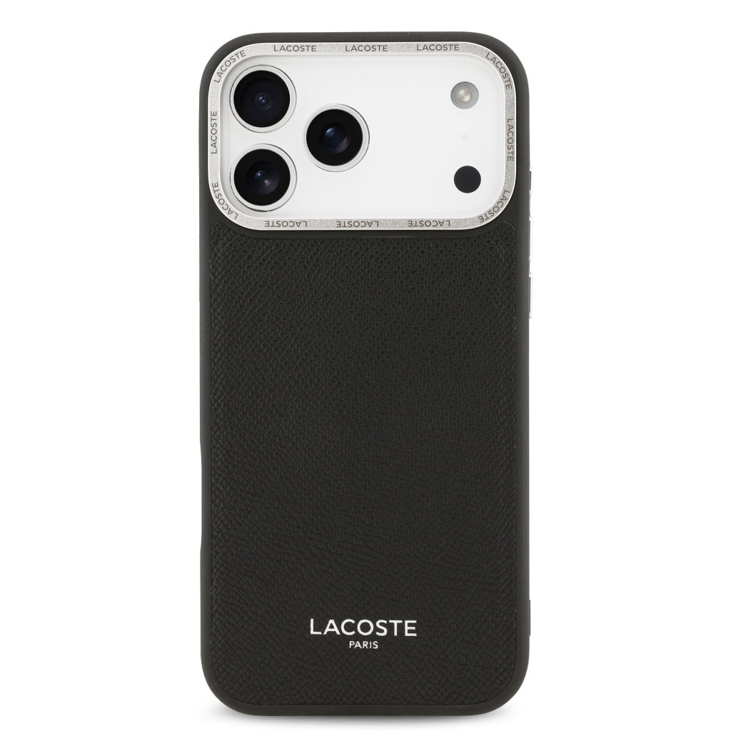 Lacoste PU Leather Champs Elysees Apple iPhone 17 Pro MagSafe tok kameravédő peremmel, fekete