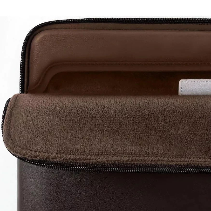 A laptop tartót minimalista, fogantyúk nélküli kialakítás jellemzi, így ideális táskában vagy hátizsákban való hordozáshoz. Könnyű szerkezetének köszönhetően minimális helyet foglal. Az elegáns, műbőrből készült időtlen, stílusos kialakítása tökéletes kiegészítője bármilyen üzleti vagy hétköznapi öltözéknek.
