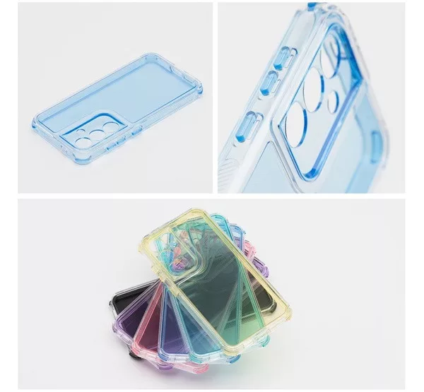 Az átlátszó PU-hátlap, amely az éleket is takarja, és a puha, színes TPU-betét garantálja a telefon védelmét és korlátozza a karcolásokat. Ezenkívül a megerősített oldalak és sarkok, valamint a kamerasziget körüli magasított perem további védelmet nyújt a sérülések ellen. Fontos, hogy a termék szerkezete megakadályozza a belső páraképződést.
