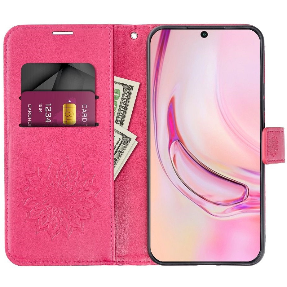 Mezzo Book Xiaomi Redmi 15 4G / 15 5G kinyitható tok kártyatartóval, mandala minta, magenta Mezzo Book Xiaomi Redmi 15 4G / 15 5G kinyitható tok kártyatartóval, mandala minta, magenta