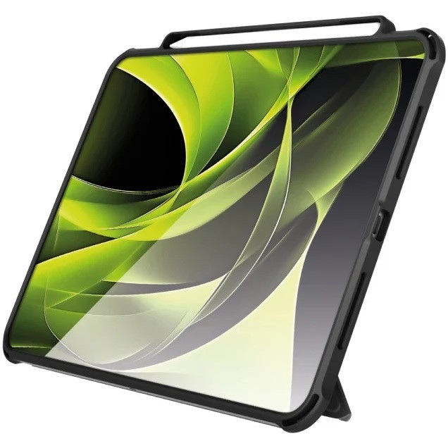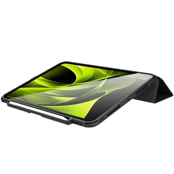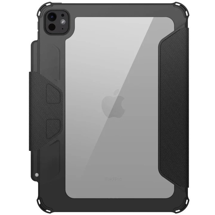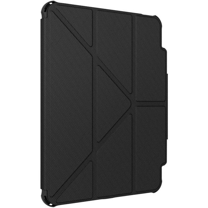 A masszív tok extra védelmet nyújt megerősített ütéscsillapító élekkel, Origami összecsukható állvánnyal az állítható nézéshez, levehető mágneses előlappal és Apple ceruzatartóval
