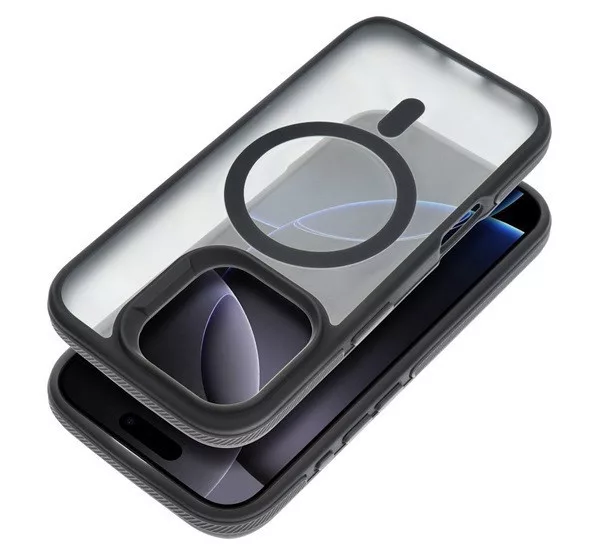 Neo iPhone 16 Plus MagSafe kompatibilis kemény hátlap tok, átlátszó/fekete
