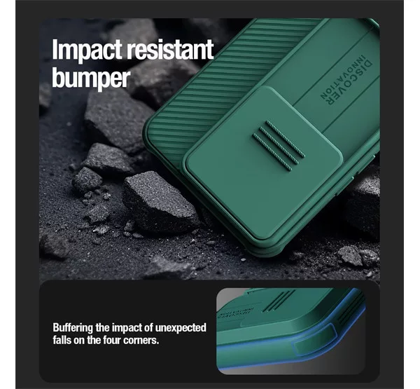 A CamShield Pro tok egyesíti a klasszikus, divatos és ütésálló elemeket. A csúsztatható sziget megvédi a telefon kameráját a karcolásoktól, és védi a kameralencséket. Környezetbarát PC és TPU anyagból készült, amely strapabíró és kopásálló. Fejlett technológiával gyártva. Kellemes tapintású külső réteg, mely taszítja az ujjlenyomatokat, illetve a szennyeződéseket. Megbízható védelmet nyújt, a négy ütésálló saroknak köszönhetően.