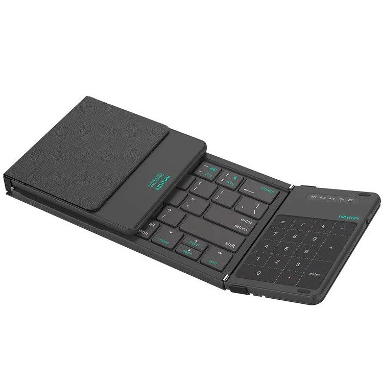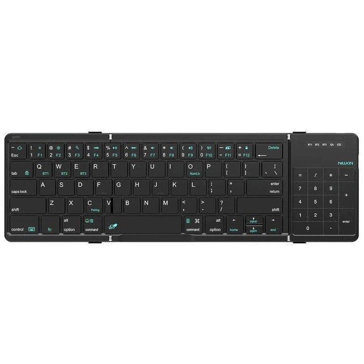 vezeték nélküli, összecsukható Bluetooth billentyűzet, USB-C töltőkábel, védőtok, használati útmutató.