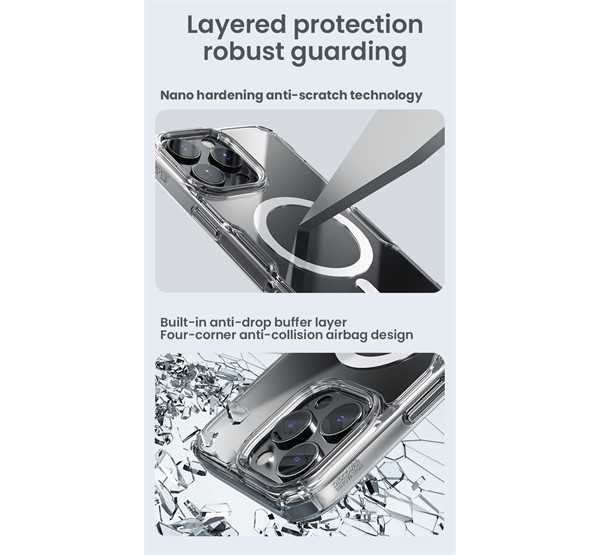 Tartós és erős polikarbonát (PC) a hátoldalon, amely karcálló, és TPU rugalmas anyag az oldalakon.