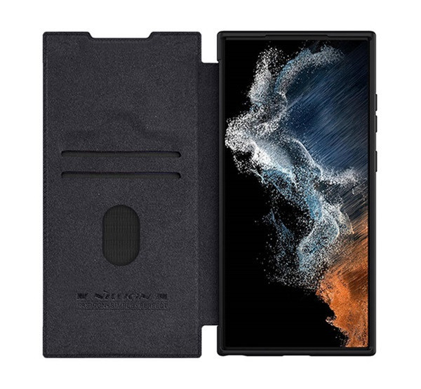 Nillkin Qin Pro Samsung Galaxy S23 Ultra bőr flip tok, fekete