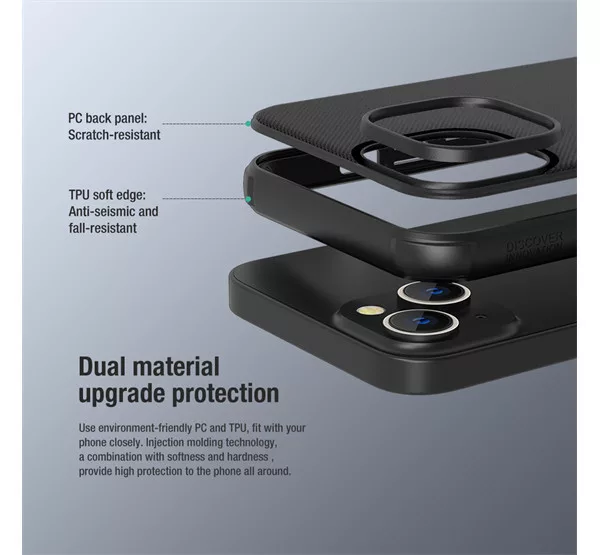A Nillkin tok matt borítása nagyfokú precízitással készült, importált környezetbarát PC-anyagokból. A tok mindkét oldalán pormentes matt UV festési technológiával van bevonva, amely tartós, és prémium hatást biztosít. A Nillkin keret elég merev ahhoz, hogy nagyszerű védelmet nyújtson, és elég rugalmas, hogy ne törjön el. A felület vízálló és porálló. Emellett nem gyűjti az ujjlenyomat foltokat vagy csúszásnyomokat.