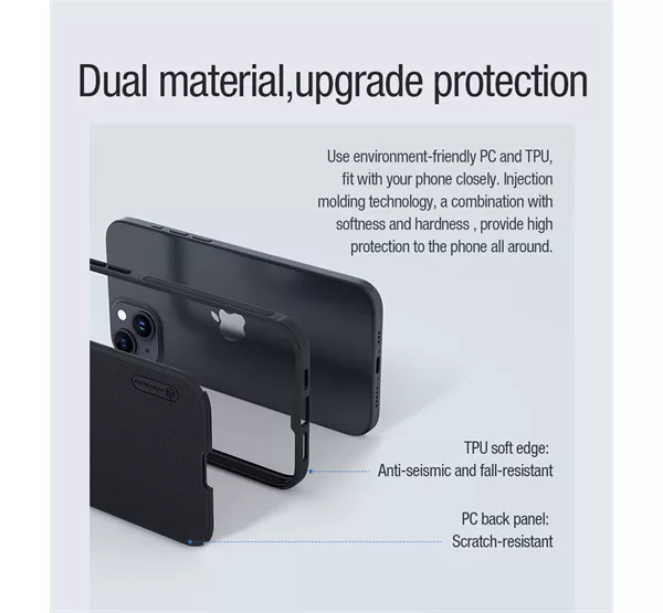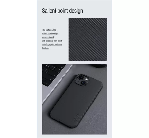 A Nillkin tok matt borítása nagyfokú precízitással készült, importált környezetbarát PC-anyagokból. A tok mindkét oldalán pormentes matt UV festési technológiával van bevonva, amely tartós, és prémium hatást biztosít. A Nillkin keret elég merev ahhoz, hogy nagyszerű védelmet nyújtson, és elég rugalmas, hogy ne törjön el. A felület vízálló és porálló. Emellett nem gyűjti az ujjlenyomat foltokat vagy csúszásnyomokat.