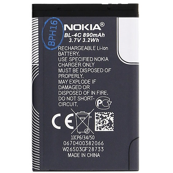 Nokia BL-4C kompatibilis gyári akkumulátor, csomagolás nélkül, 890mAh (Bulk)