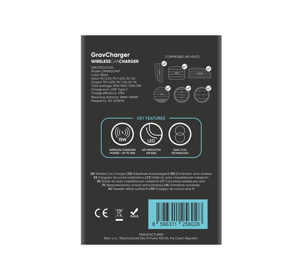 Az OBAL:ME GravCharger-t úgy tervezték, hogy a szellőzőnyílásra csíptethető legyen, így széles körben kompatibilis a különböző típusú járművekkel.