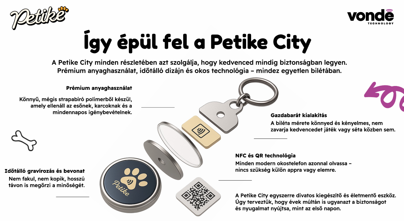 Gondoskodás egy apró bilétában -  Nem számít, hol vagytok – a Petike gondoskodik róla, hogy kedvenced mindig visszataláljon hozzád.  Stílusos, szerethető és mindig készen áll.