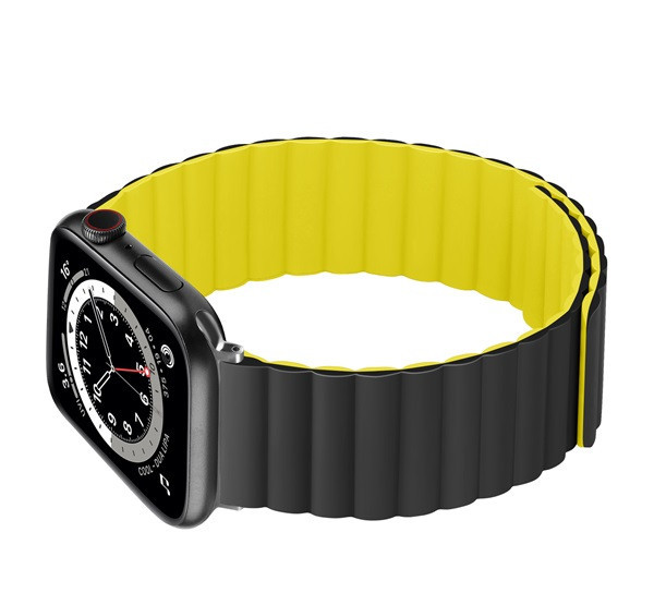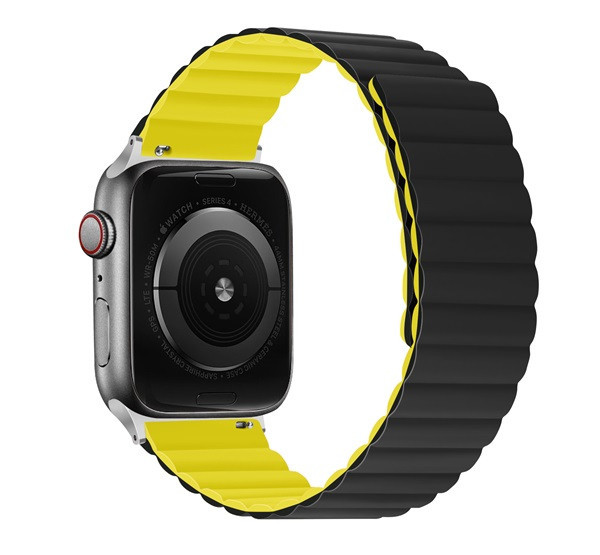Phoner Rever Apple Watch forgatható mágneses szilikon szíj, 41/40/38mm, S/M, fekete/sárga
