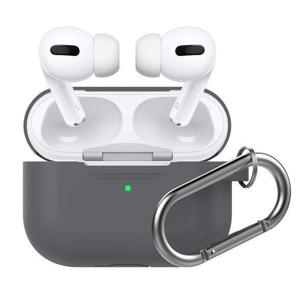 Phoner Simple Apple Airpods Pro szilikon tok akasztóval, sötétszürke