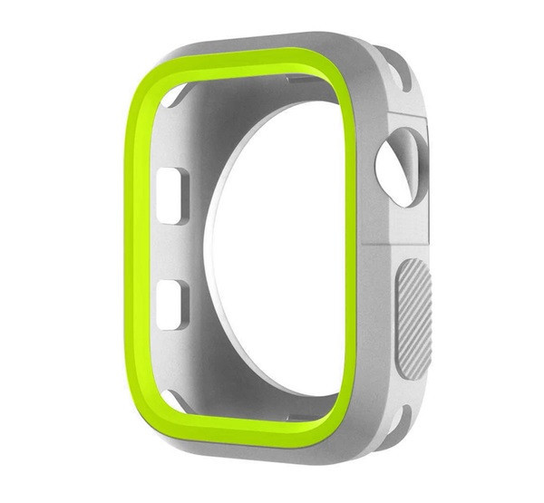 Phoner Twin Apple Watch szilikon tok, 45mm, ezüst/zöld