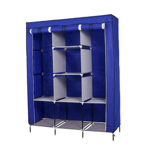 Ruhás szekrény, mobil, cipzározható ajtó, védőhuzattal, 130 x 45 x 170 cm, kék