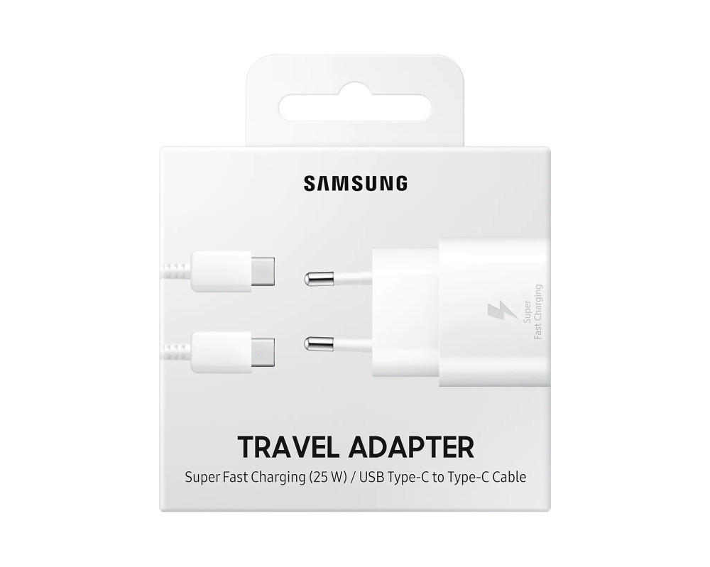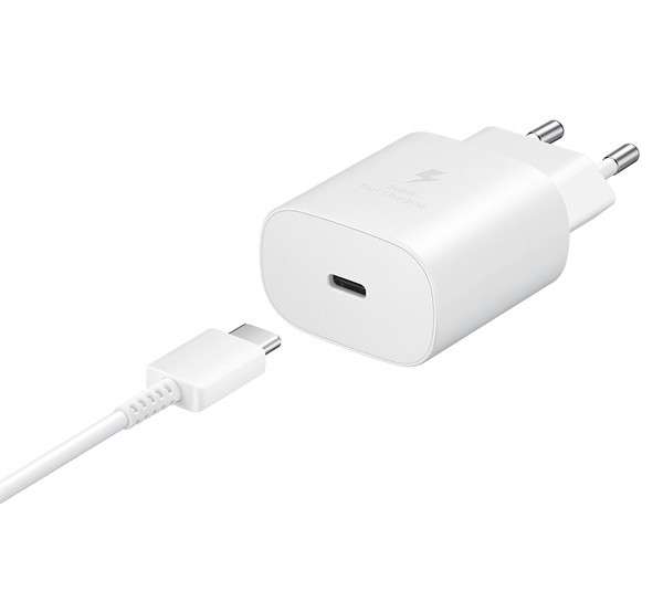 Samsung EP-TA800XW USB-C hálózati gyorstöltő USB-C kábellel, 25W, fehér (Retail-pack, dobozos)