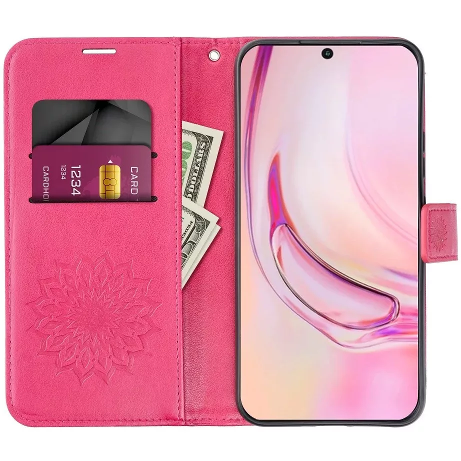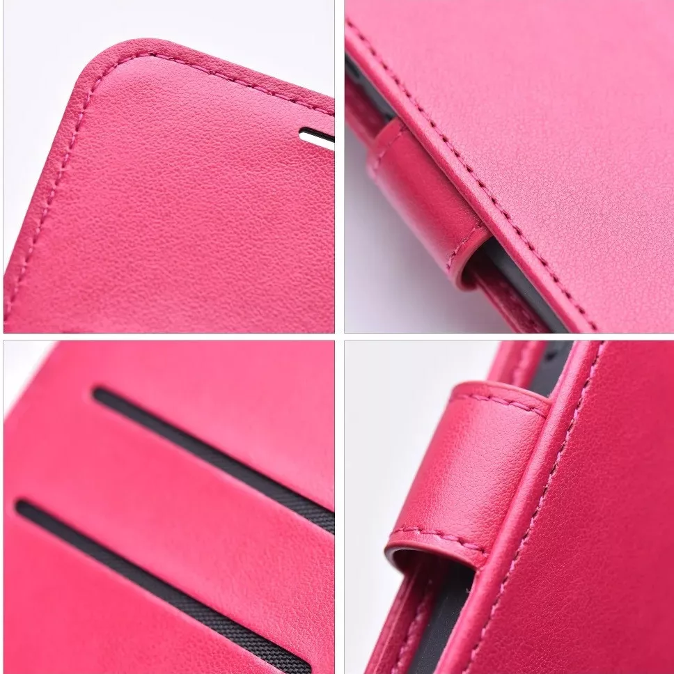 Két kisebb és egy nagyobb zsebbel rendelkezik az iratok, kártyák é bankjegyei számára, a kézpánt pedig garantálja a biztonságos fogást. Az ökobőr bevonat elegáns megjelenést kölcsönöz a toknak, a rugalmas TPU betét pedig megkönnyíti a készülék behelyezését. A mágneses csatt biztonságos zárodást biztosít.