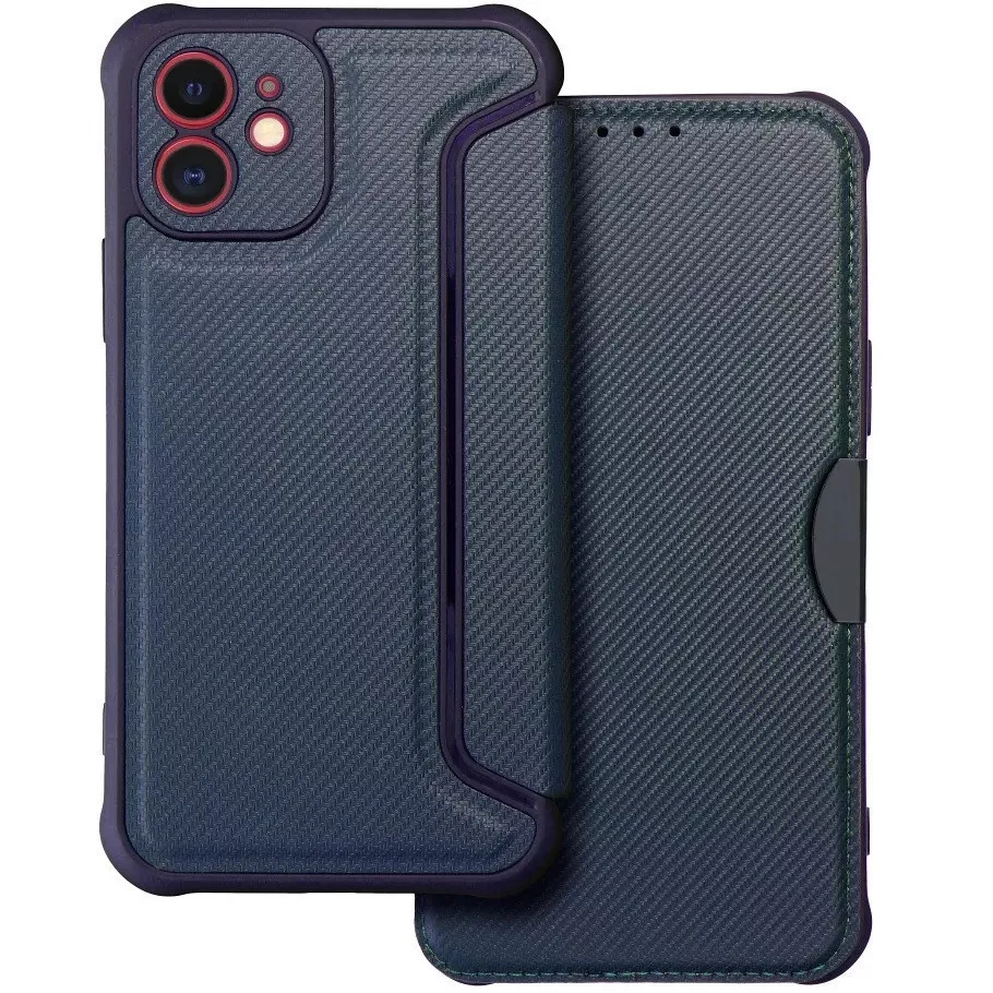Samsung Galaxy A35 5G SM-A356B, Oldalra nyíló tok, légpárnás sarok, bőrhatású, karbon minta, Razor Book, kék