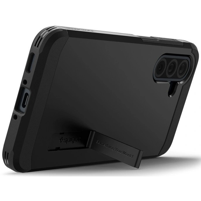 Samsung Galaxy A36 5G SM-A366B, Szilikon tok + műanyag hátlap, kitámasztóval, Spigen Tough Armor, fekete