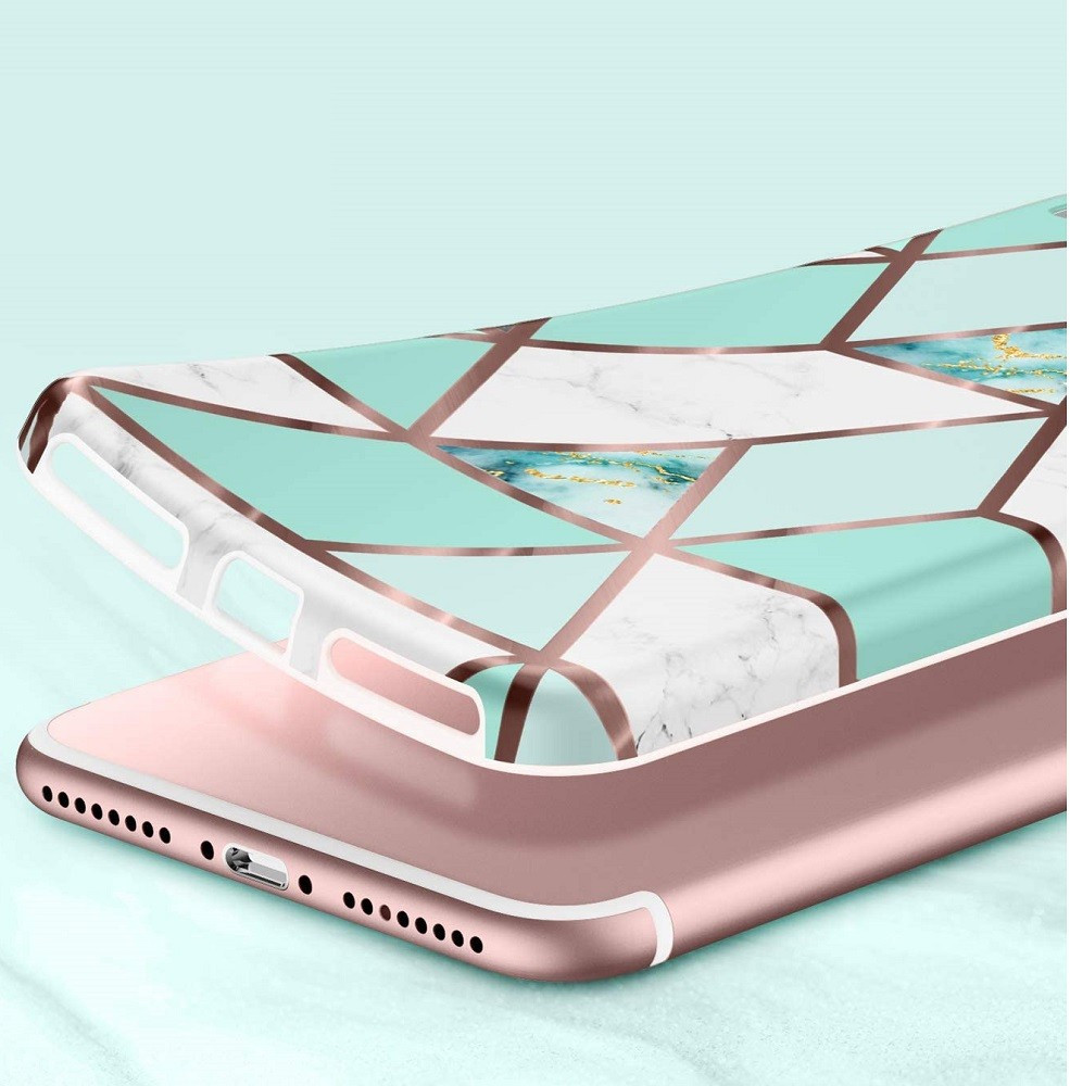 Samsung Galaxy A51 5G SM-A516F, Szilikon tok, sokszöges márvány minta, Wooze Geometric Marble, színes/zöld