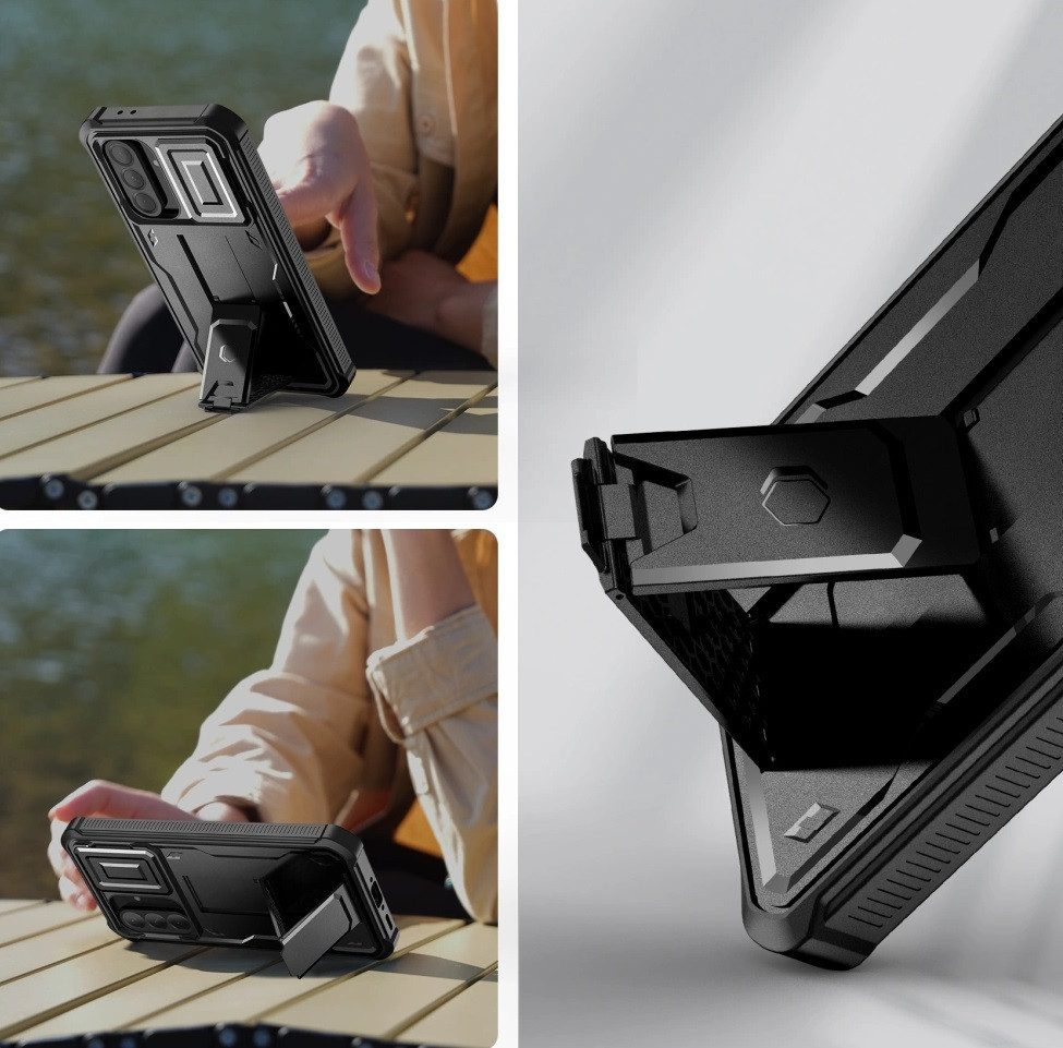 A két részből álló tok műanyagból és ütésálló TPU-ból készült. A sarkokban lévő további megerősítések (légpárnás sarkok) hatékonyan tompítják az esetleges eséseket. A készülék elejét egy beépített polikarbonát burkolattal ellátott keret veszi körül, amely tökéletesen védi a kijelzőt az esetleges karcolásoktól. Ezeken kívül csúszásgátló felülettel látták el a biztosabb fogás érdekében, és támogatja vezeték nélküli töltést is.