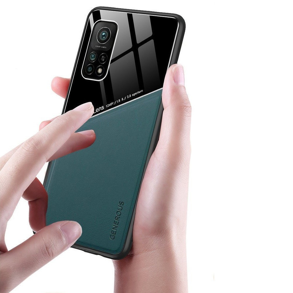 Samsung Galaxy A73 5G SM-A736B, Szilikon tok, bőr és plexi hátlap, közepesen ütésálló, mágneses tartóval kompatibilis, Wooze Texture, zöld