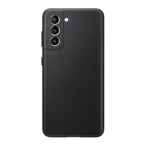 Samsung Galaxy S21 Plus 5G SM-G996, Műanyag hátlap védőtok, bőr hátlap, fekete, gyári