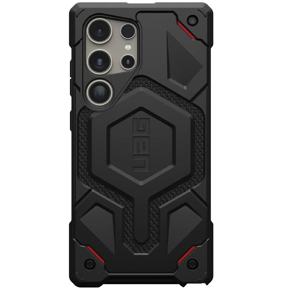 Samsung Galaxy S24 Ultra SM-S928, Műanyag hátlap védőtok, szilikon belső, közepesen ütésálló, mágneses, textil minta, kevlár borítás, UAG Monarch Pro Kevlar, mintás/fekete