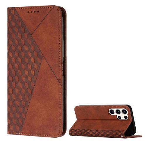 Samsung Galaxy S24 Ultra SM-S928, Oldalra nyíló tok, bőrhatású, stand, 3D rombusz minta, barna