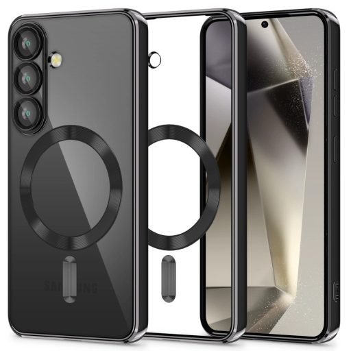 Samsung Galaxy S25 FE SM-S731, Műanyag hátlap védőtok + szilikon keret, közepesen ütésálló, Magsafe töltővel kompatibilis, fényes keret, Magflex Magsafe, átlátszó/fekete
