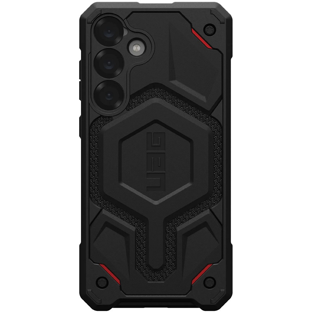 Samsung Galaxy S25 Plus SM-S936, Műanyag hátlap védőtok, szilikon belső, közepesen ütésálló, mágneses, textil minta, kevlár borítás, UAG Monarch Pro Kevlar, mintás/fekete