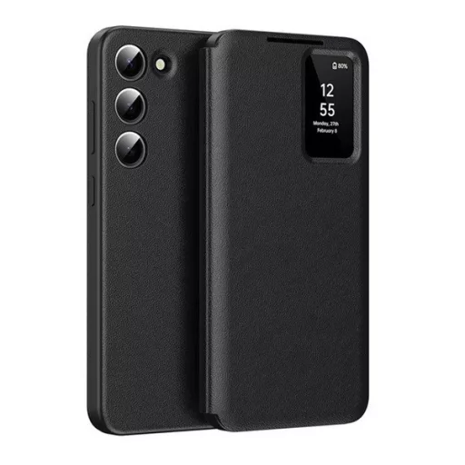 Samsung Galaxy S25 SM-S931, Oldalra nyíló tok, hívás mutatóval, kártyatartóval, Smart View Cover, fekete