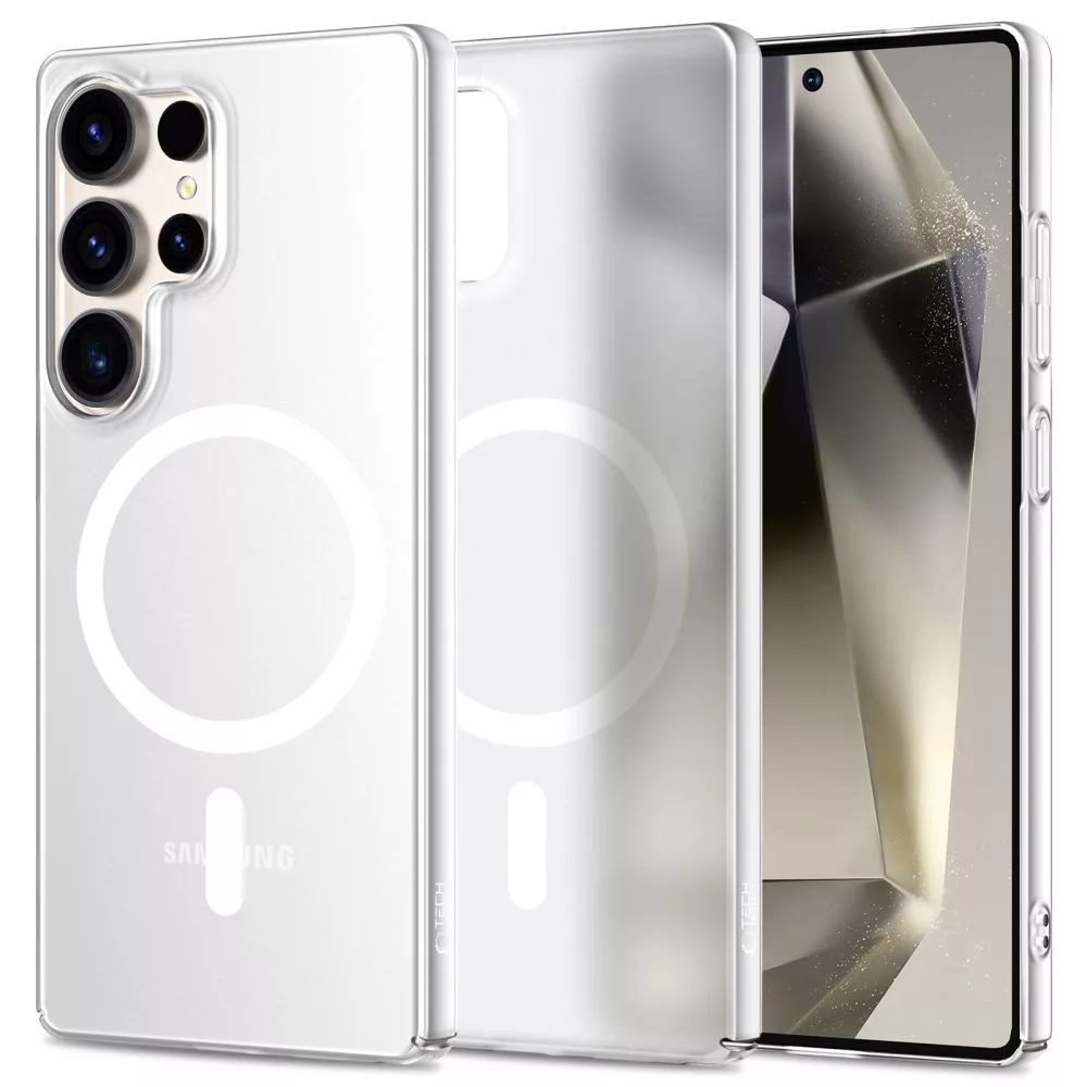 Samsung Galaxy S25 Ultra SM-S938, Műanyag hátlap védőtok + szilikon keret, közepesen ütésálló, Magsafe töltővel kompatibilis, Magslim Magsafe, áttetsző/fehér