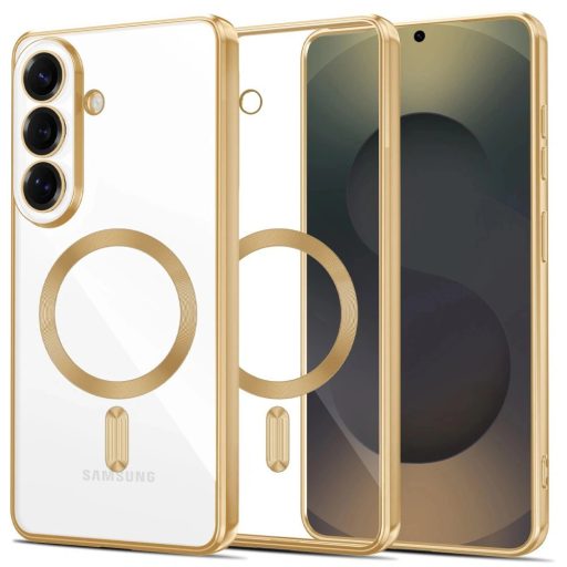 Samsung Galaxy S26 Plus SM-S947, Műanyag hátlap védőtok + szilikon keret, közepesen ütésálló, Magsafe töltővel kompatibilis, fényes keret, Magflex Magsafe, átlátszó/arany Samsung Galaxy S26 Plus SM-S947, Műanyag hátlap védőtok + szilikon keret, közepesen ütésálló, Magsafe töltővel kompatibilis, fényes keret, Magflex Magsafe, átlátszó/arany