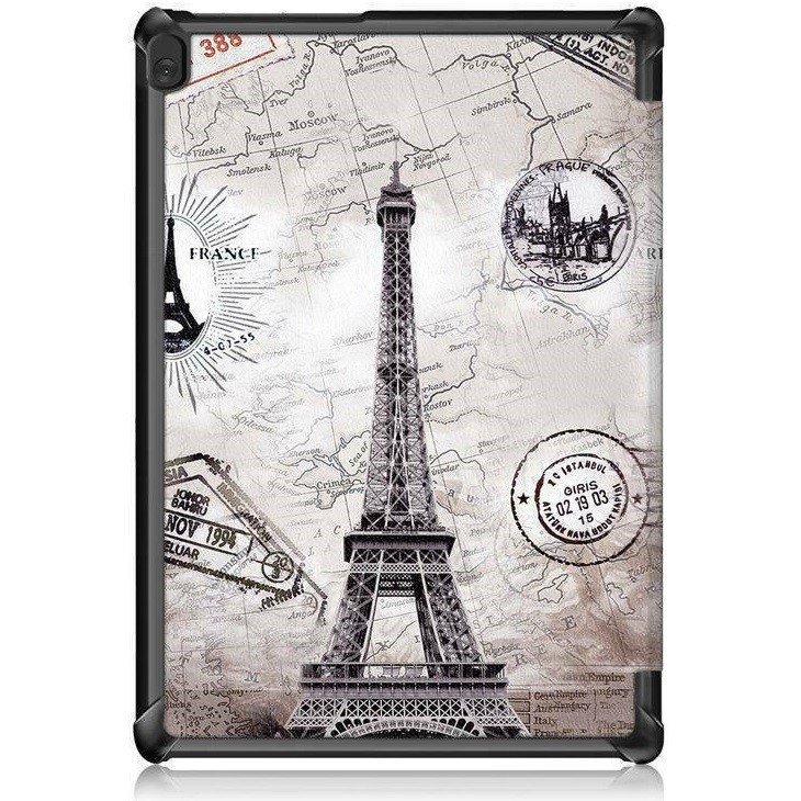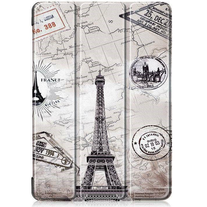Samsung Galaxy Tab S9 FE Plus (12.4) SM-X610 / X616B, mappa tok, Eiffel torony, térkép minta, Trifold, szürke