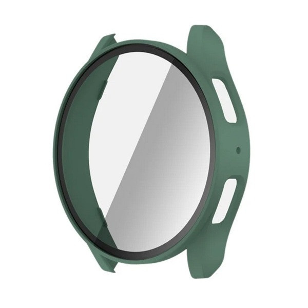 Samsung Galaxy Watch 7 (44 mm) SM-L310 / L315, Műanyag védőkeret, kijelzővédő üveggel, közepesen ütésálló, szíj nélkül, sötétzöld