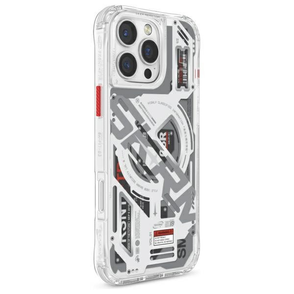 Félig átlátszó kivitelű védőtok, amely kiemeli az Ekho jellegzetes, gépszerű réteges esztétikáját. A futurisztikus kialakítás alatt egy vezeték nélküli töltésre tervezett mágneses modul található. Ezenkívül a sarkokban található cserélhető markolatoknak köszönhetően pántot is hozzáadhat, és a tokot különböző módon viselheti.