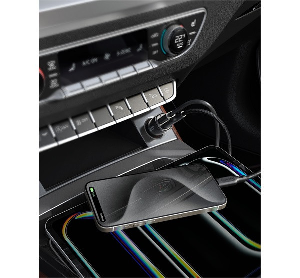 Kompakt kialakításának (24 x 25 x 66,5 mm) köszönhetően a töltő könnyedén elfér az autóban anélkül, hogy sok helyet foglalna. Univerzális kompatibilitással rendelkezik, olyan eszközöket támogat, mint az okosórák, okostelefonok, táblagépek, MacBook-ok és Airpods-ok.