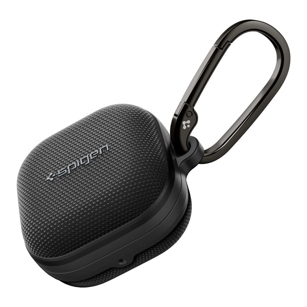 Ez az elegáns tok nem csupán védi, de stílusában is kiemeli fülhallgatódat. A matt fekete felület, kiegészítve egy finoman textúrált, szövött mintázatú panellel (ahogy a képeken is látható), időtlen és modern karaktert kölcsönöz a toknak. A Spigen logó diszkréten, mégis jól láthatóan díszíti a felületet, jelezve a minőséget és az eredetiséget.