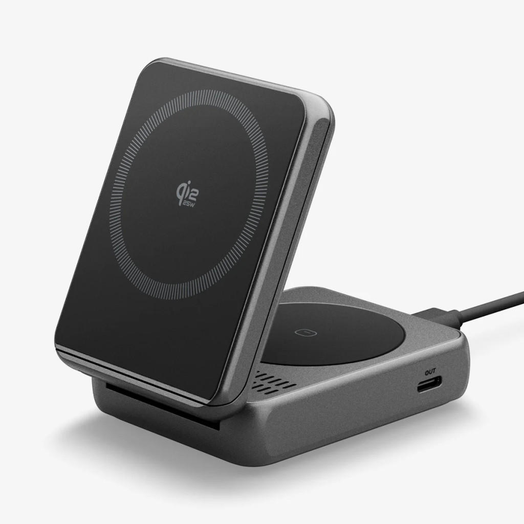 Élvezze a gyors 25 W-os vezeték nélküli töltést, az erős mágneses igazítást és az összecsukható kialakítást, amely zökkenőmentesen illeszkedik bármilyen munkaterülethez vagy éjjeliszekrényhez.