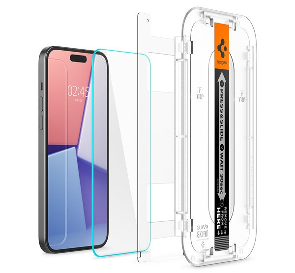 Spigen Glas.tR EZ Fit Apple iPhone 15 Plus / iPhone 16 Plus Tempered kijelzővédő fólia felhelyező kerettel (2db)