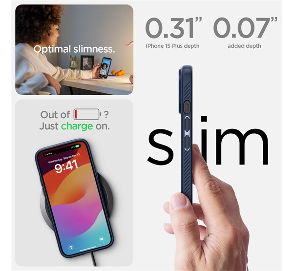 Spigen Liquid Air Apple iPhone 15 Plus tok, kék