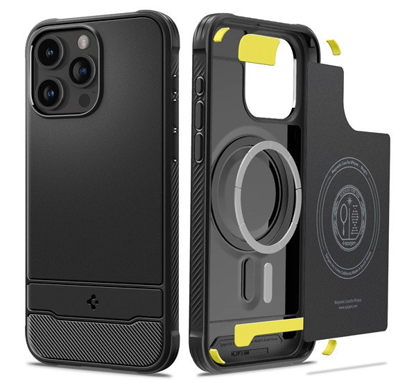 Spigen Rugged Armor MagFit Apple iPhone 15 Pro Max tok, MagSafe, Matte Black, fekete