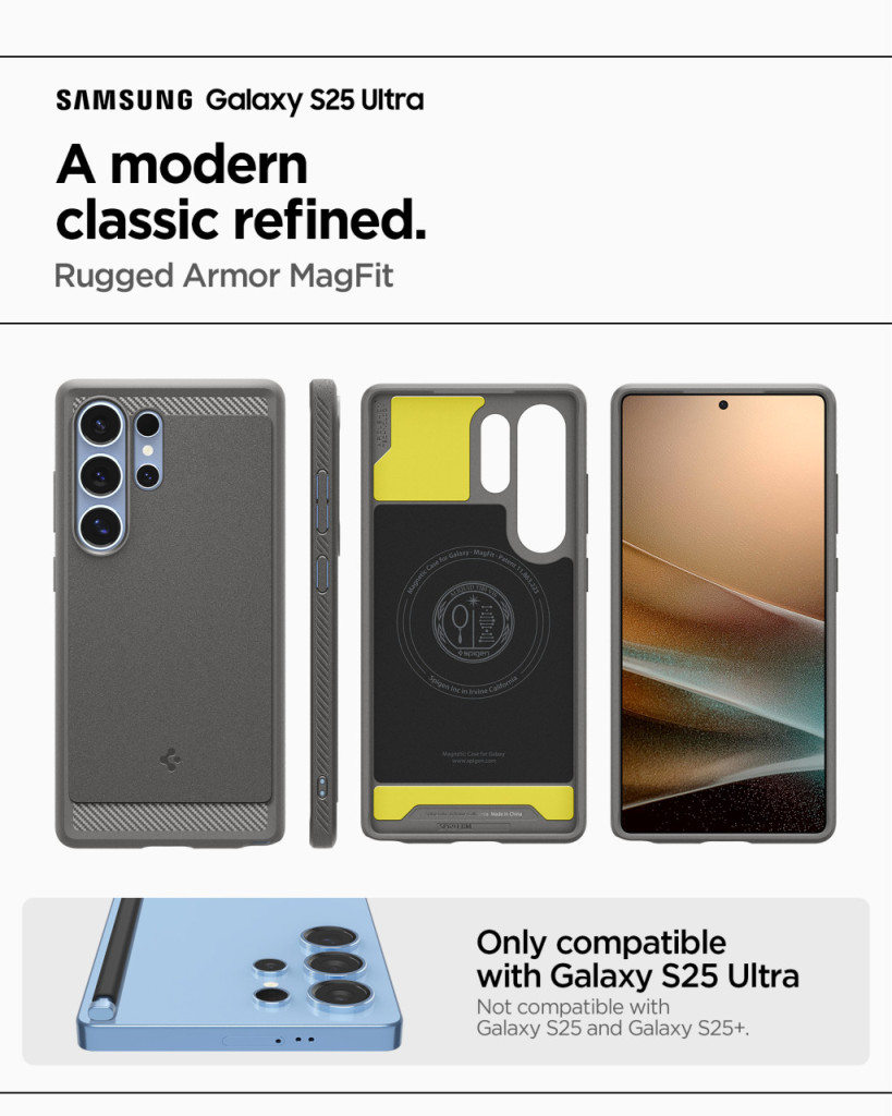 Spigen Rugged Armor MagFit Samsung Galaxy S25 Ultra tok, Marble, szürke