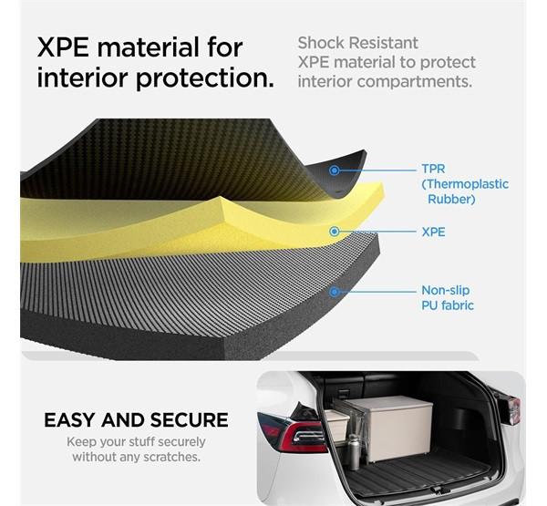 Tartsa távol a szemetet a csomagtartójától. Rendezze Teslája hátsó csomagtartóját a Spigen Cargo Linerrel. Akár élelmiszert szállítasz, akár felszerelést cipelsz, tartsd meg a tiszta és hibátlan tárolást mindenhol, ahová mész.